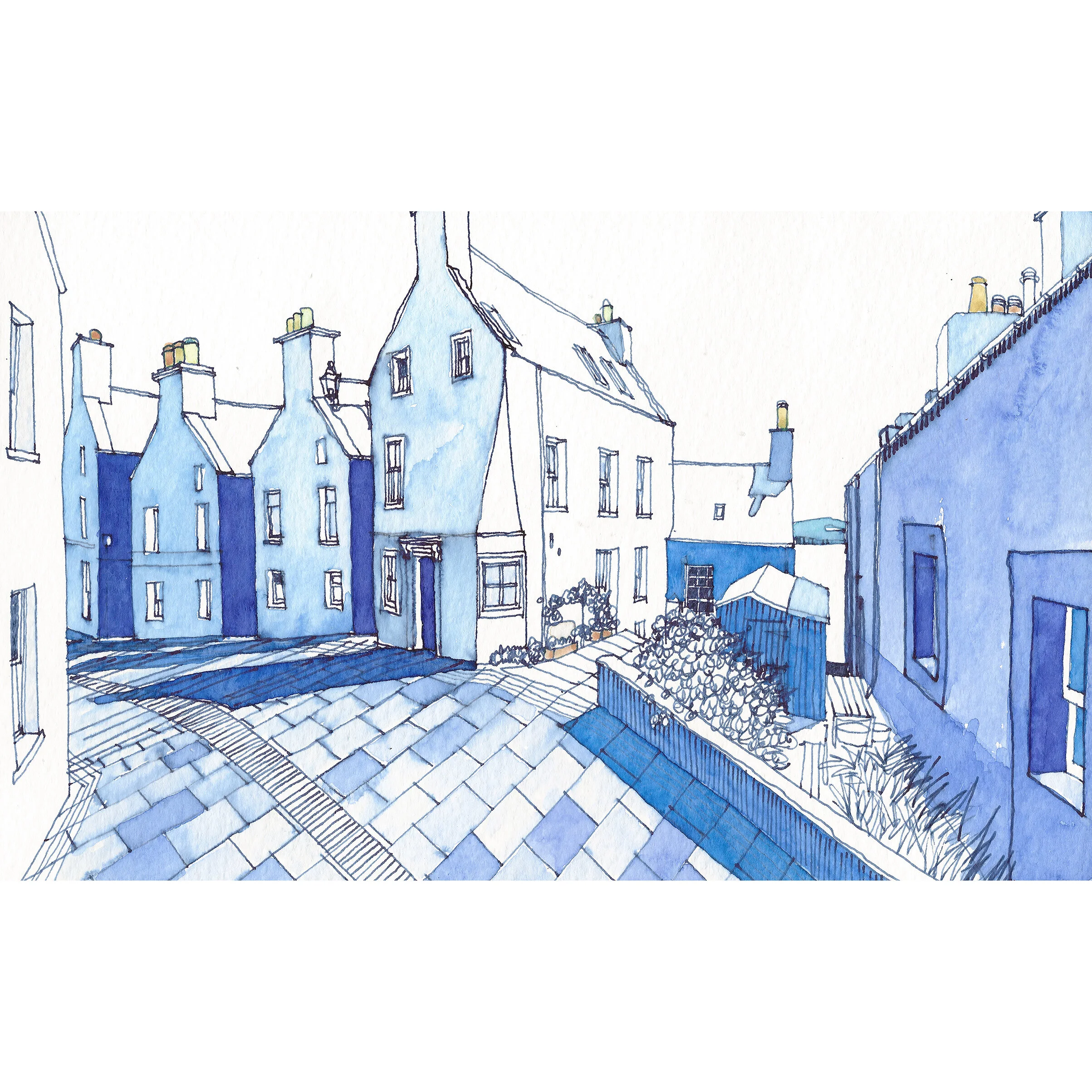 An illustration of Stromness, Orkney, making use of acrylic ink.